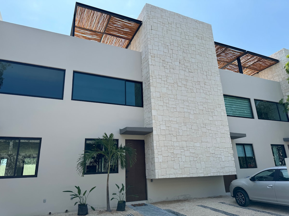 - Escape the crowds! Peaceful 3BR townhome in exclusive Palmara Residential. - Playa's premier gated community for families with pool, gym, paddle court and 24/7 security. - Private ensuite bathrooms, full kitchen, reliable WiFi, AC. Close to Centro Maya and beaches. - Rental car recommended with free secure parking included. - Perfect for longer family stays. Your spacious and serene sanctuary awaits!