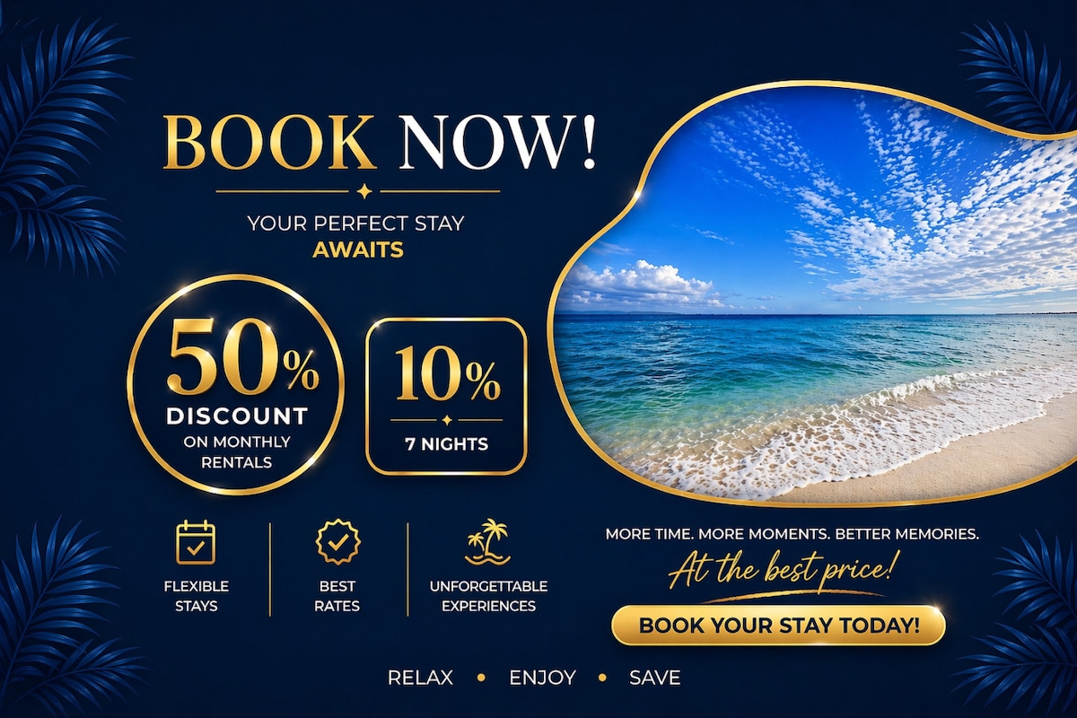 Enjoy your vacation in this charming four-bedroom island duplex, just six blocks from the sea where you can dive, snorkel, and swim in Cozumel’s crystal-clear Caribbean waters. Conveniently located five blocks from the supermarket, theater, downtown, and ferry, and only three blocks from the iconic Corpus Christi Church. Includes 1 king, 2 queen, 2 full beds, plus a sofa bed for 2. Important: No private parking available. Street parking only, subject to availability.