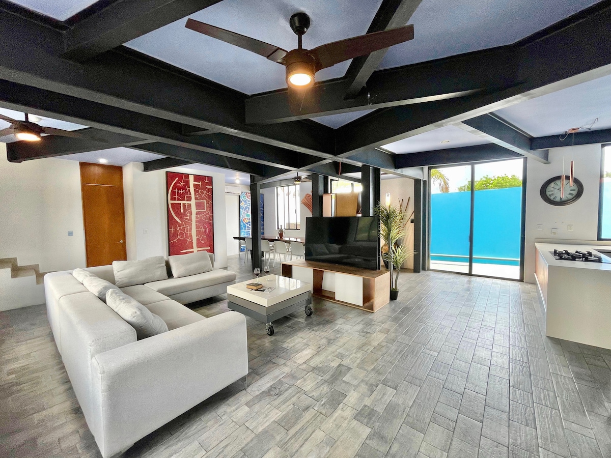 Welcome to our ideal house for an unforgettable vacation on the island. Create unforgettable moments. The property offers: •A private pool with a slide, perfect for kids. •Profesional billiard room for friends and large common spaces to enjoy together. •3 bedrooms with A/C, 3.5 bathrooms and fully equipped kitchen. Located just 10 minutes from downtown, we are close to beaches, restaurants and family activities. Plus, we're pet-friendly & High WiFi Book now and start your adventure in Cozumel.