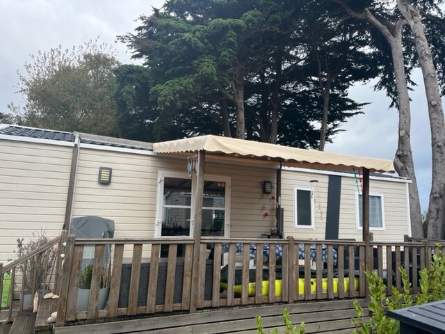 Notre MH " La Costa Breizha " vous attend afin de vous offrir des vacances inoubliables au camping Le conguel 4*. D'une superficie de 40 m², il se compose d'1 grande pièce à vivre ouverte sur la terrasse, avec vue sur l'océan au loin, d'1 large cuisine fonctionnelle équipée, avec vue sur les prés, d'1 salon avec grand canapé, 3 chambres dont une suite parentale, 2 salles d'eau et 2 wc. Terrasse de 7m50 de long, couverte sur 4m50 Grande plage en face. Calme garanti. Un endroit pour se ressourcer