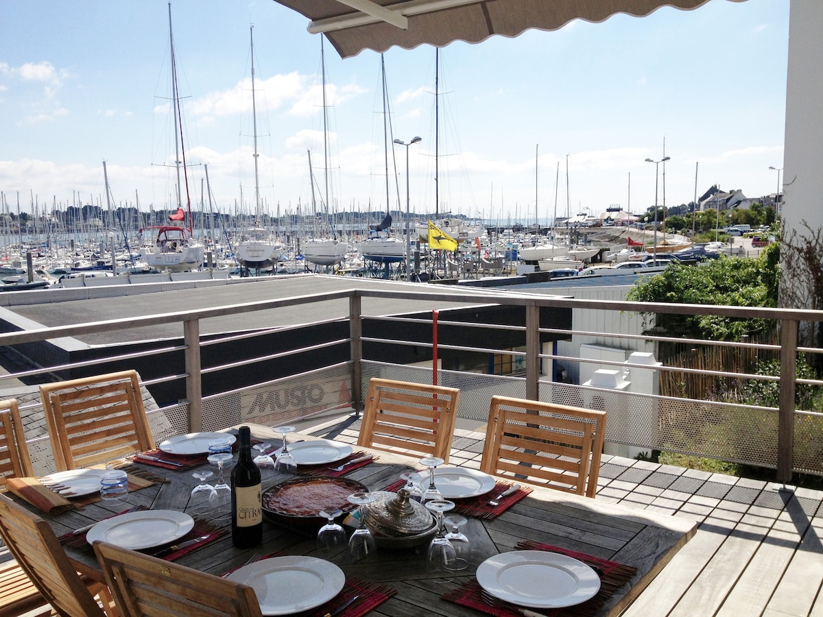 Petite maison mitoyenne située au centre de la ville, dans une ruelle, à 150m du rivage de la rade de Lorient et 350m du port de plaisance de Ste Catherine. Vue vers les bateaux depuis la fenêtre du bureau . Dans un rayon de 500m vous trouverez quelques commerces, deux aires de jeux, des arrêts de bateaux-bus et bus pour Port Louis, Lorient (correspondance Ile de Groix et Gâvres), des départs de randonnées dont GR34. A 3,5 kms il y a les plages et remparts de Port Louis.