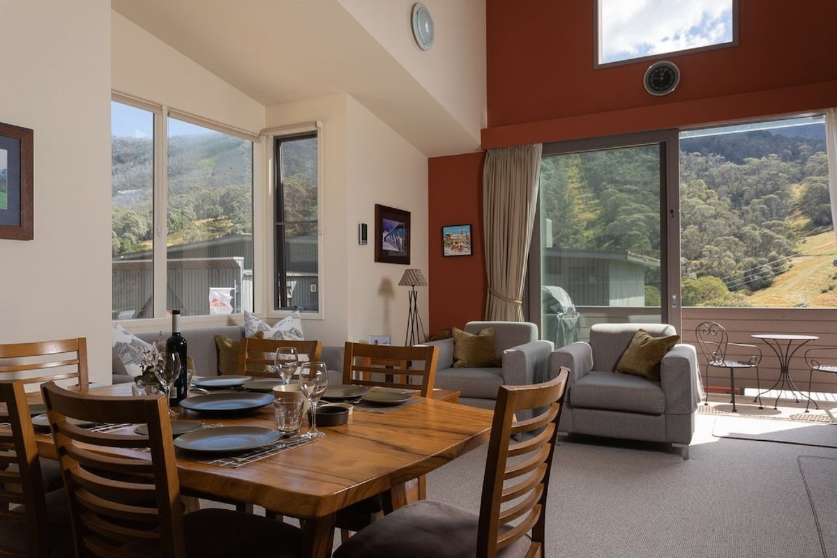 Welcome to High Plain, a luxurious Alpine Chalet in Crackenback resort, nestled in the heart of Thredbo Valley, bordering the Kosciuszko National Park. Enjoy our gourmet kitchen, cozy wood fireplace, European appliances, plush beds, drying room and secure storage for bikes or kayaks. Just a short walk with access to the resort facilities, enjoy canoeing on the lake, pool, golf, gym, sauna and onsite dining. Perfect for year-round adventures and relaxation in stunning natural surroundings!