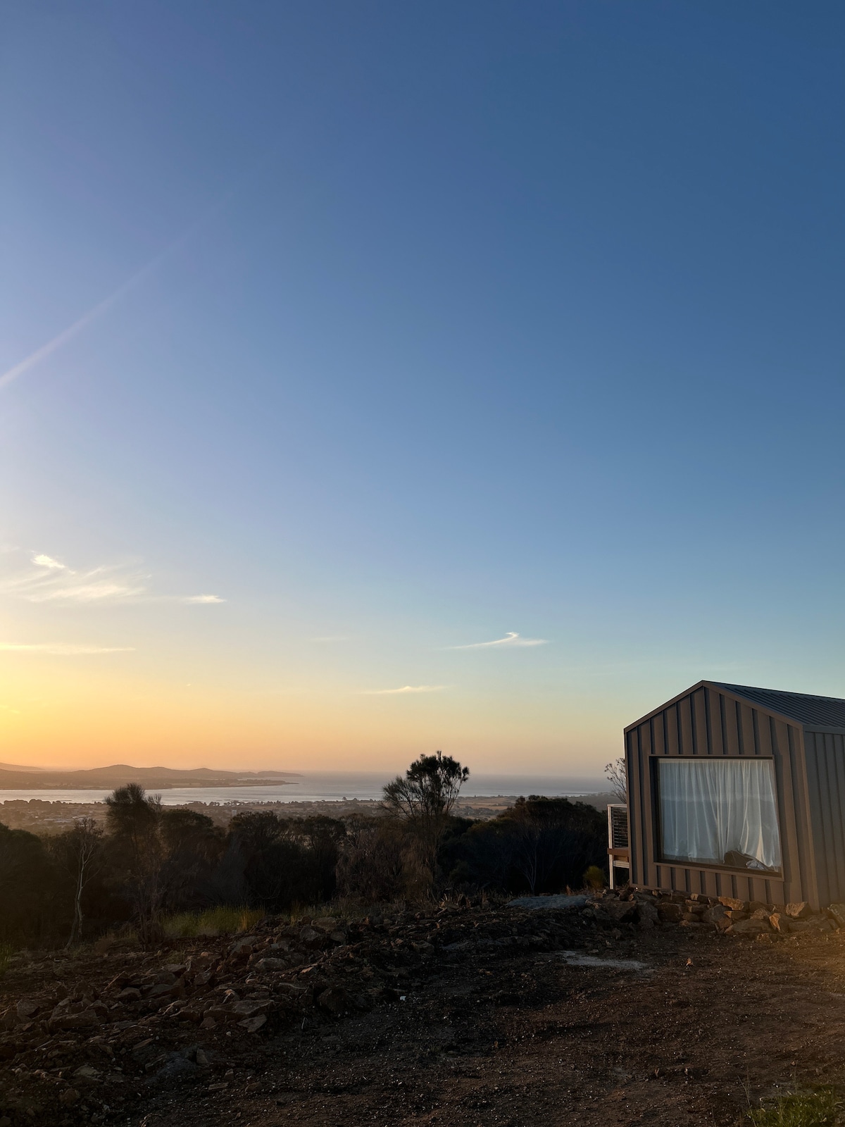 Designed with comfort and ultimate rest and relaxation in mind, Salt Box Hideaway features soothing rich naval tones and a grand Tasmanian Blue Gum custom-made built-in bed. Sit by the cedar window and watch the rolling mist cover the hills as night falls, or rise early and embrace the tranquillity on the water's edge. We love to spoil our guests with complimentary port for you to sip under the stars. This is a rustic part of the world and an important part of Tasmania's history.
