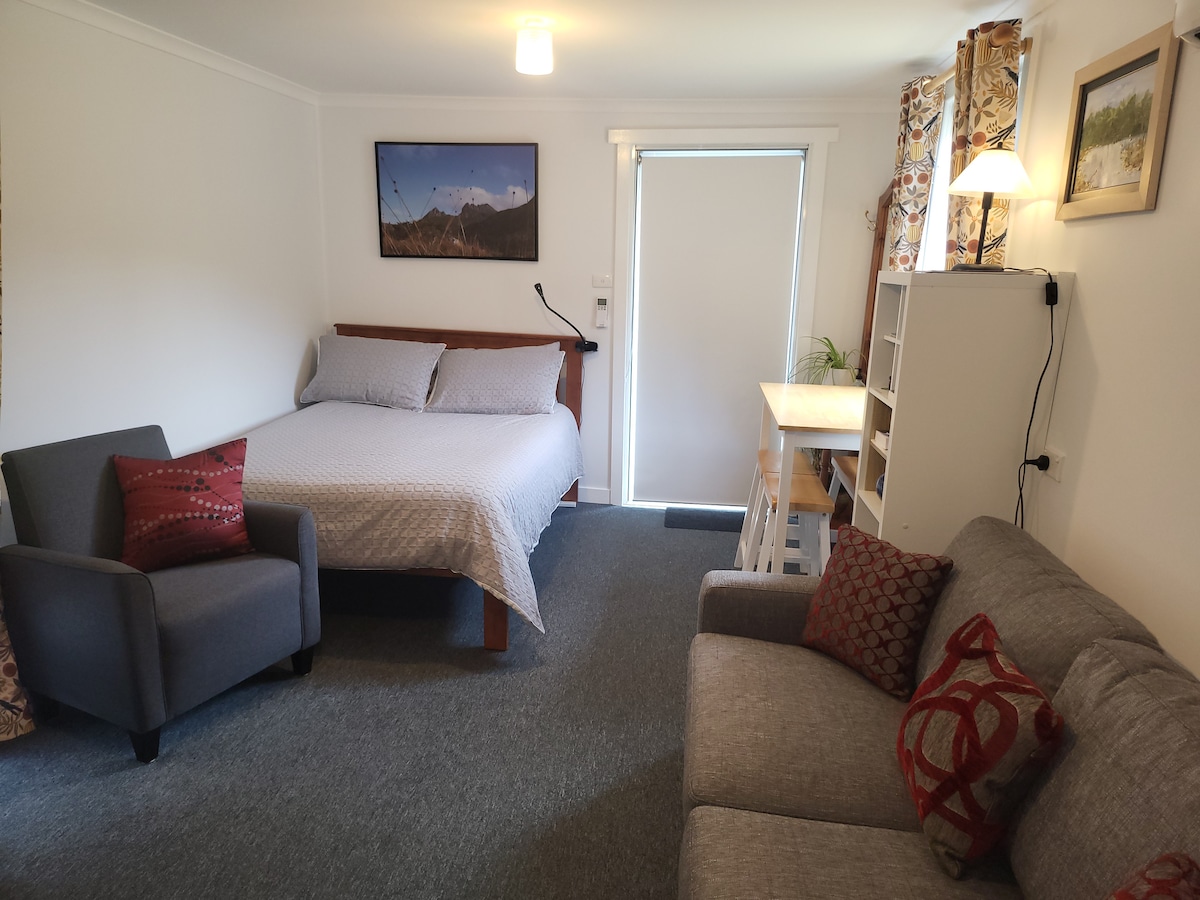 Cosy, quirky small shack built over many weekends .. a labour of love! Five minutes drive to Great Lake Hotel . Ideal for romantic getaway for two or 2 fishing buddies and a friend in single bedroom accessed outside with own toilet. A place to relax ,feel the peace and quiet, read on the verandah or inside by the woodheater which is ONLY heating are you ok with that? This is NOT INSTANT BOOK. Please read all description. Must climb stairs to bedrooms. Dog friendly ONLY on application