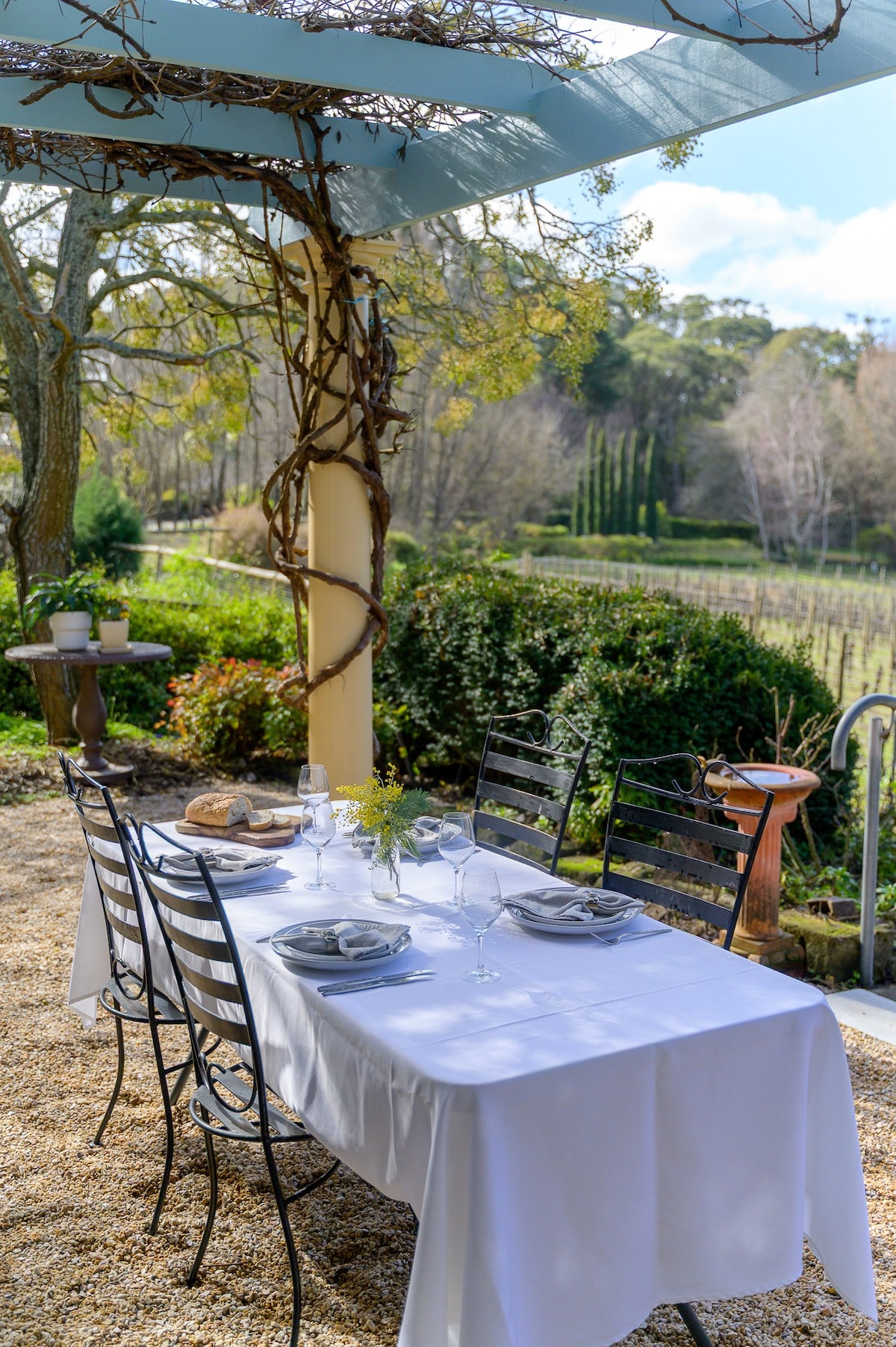 Picturesque bluestone cottage surrounded by vineyards with hills views over Piccadilly valley. Peace and quiet in a rural setting but just 25 minutes from the centre of Adelaide. Minutes away from the towns of Stirling and Uraidla and the best of the Adelaide Hills cellar doors. Fully equipped kitchen/dining area, air-conditioning, wood burning fire in the colder months, TV, main bathroom with shower and 3/4 bath and 2 separate toilets, laundry, spacious outdoor BBQ area, carport, linen supplied