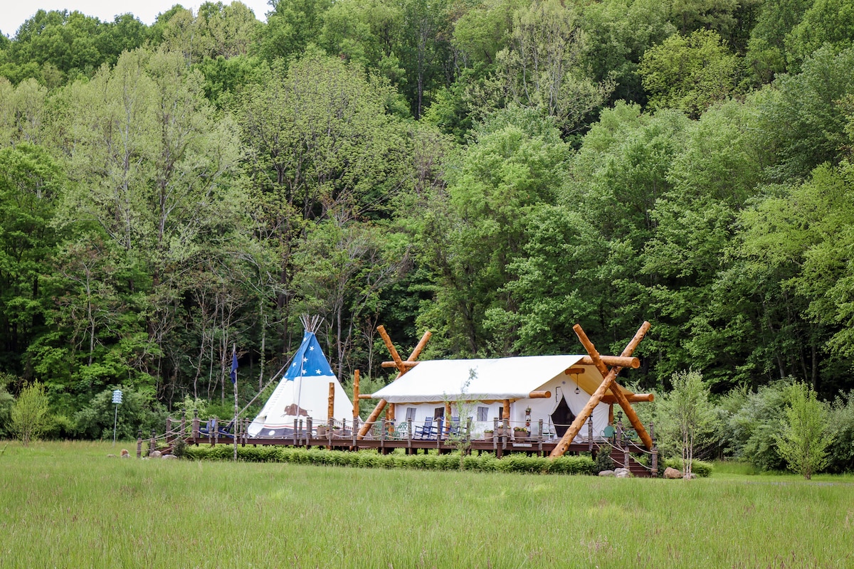 鹭巢帐篷,带印第安圆锥形帐篷