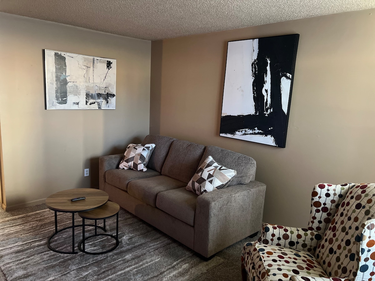 Relax with the whole family at this peaceful 2 bedroom apartment. Simple and modest place that includes washer & dryer, keurig machine, WiFi, TVs in each bedroom & living area. The apartment also has a small patio area that includes a small grill. The best part about the space is the peacefulness! It’s on a quiet street with great neighbors & the comfort of being safe!