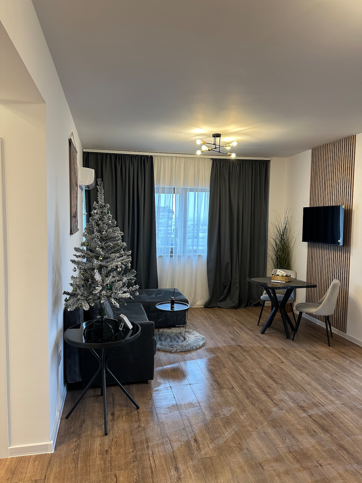 Elegant apartment in the heart of Craiova, where modern comfort meets urban refinement. Spacious living area, cozy bedroom, two immaculate bathrooms, and a fully equipped kitchen. Fast Wi-Fi, air conditioning, and independent check-in. Perfect for guests seeking style, a prime location, and a premium stay in the city.