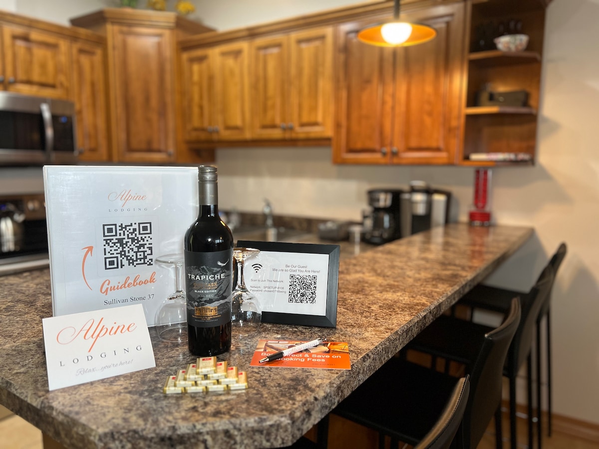Welcome to our cozy slopeside condo in Kimberley! Enjoy stunning Canadian Rockies views with serene sunrises and alpine glow sunsets. Our ground-floor unit offers easy access and comforts like a gas fireplace, a king bed, full kitchen, WiFi, Telus cable, flattop grill, in-suite washer/dryer, and it’s pet-friendly! Just minutes from the Platzl, with access to shared amenities: hot tub, sauna, games room, and seasonal pool. Perfect for relaxing après-ski or exploring Kimberley’s charm.