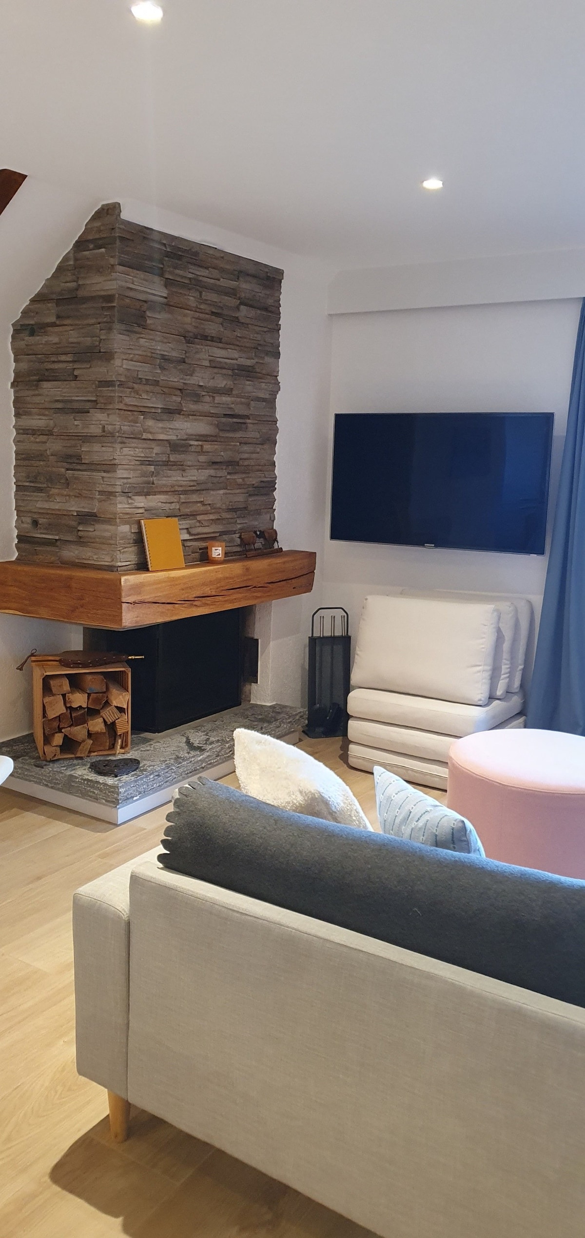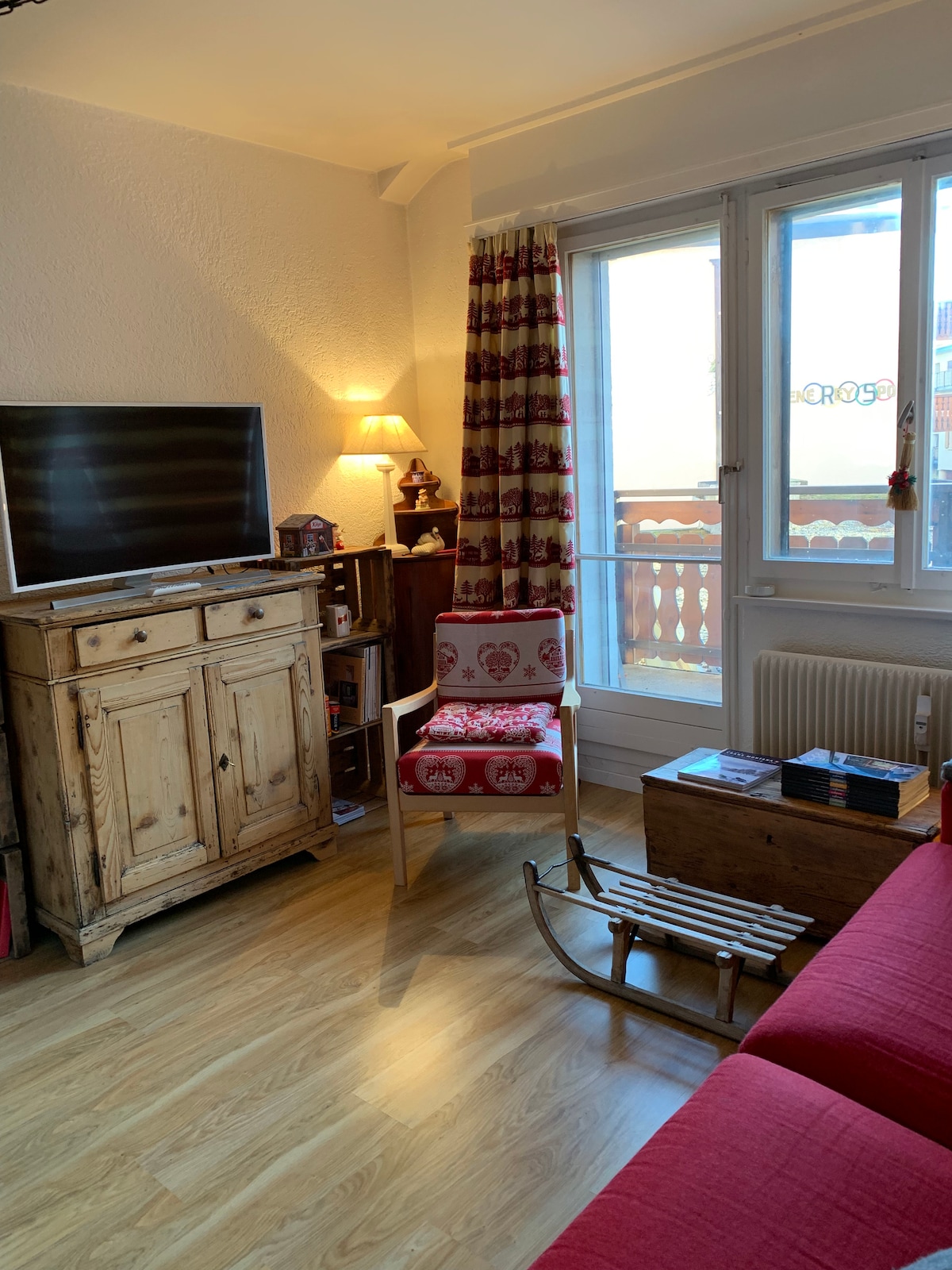 Friendly, modern and cozy studio. Ideal location, quiet, a few minutes walk from the city center. Nice view of the mountains, sunny balcony from afternoon til sunset. In the winter season you will appreciate the proximity of the Snow Island for the kids or the free shuttle to take you to the ski slopes. Back from the heights, let's get cozy and enjoy the fireplace ! In the summertime you will appreciate the proximity of the 2 golf courses. Enjoy the pool and the tennis court of the residence !