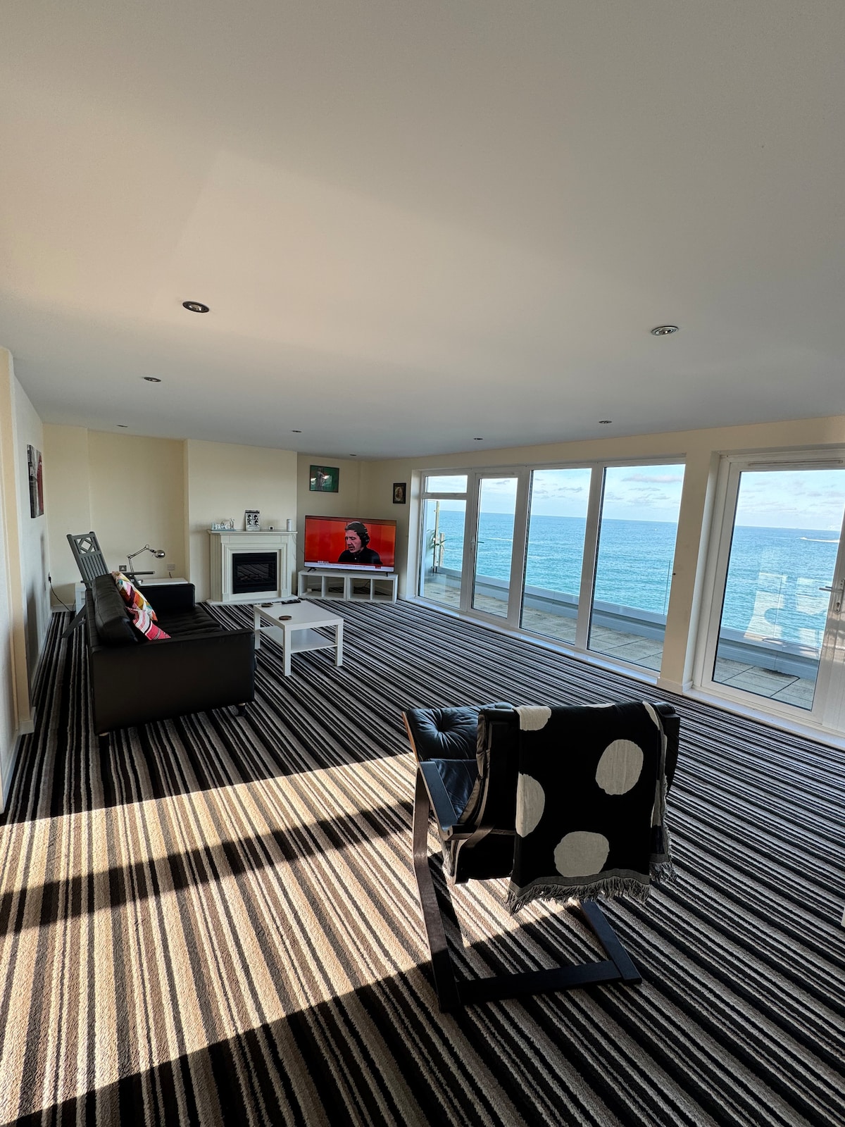 A cosy and quaint space, with everything you need for a beach break- panoramic views from front and back of the flat, a view over fistral beach to the rear, and across the town beaches to the front! Whether you’re curled up in bed or enjoying a cuppa in the front room, the views are stunning. There is on street parking to the front of the property, but it is a central location and spaces are limited. There is a council car park 30m up the hill from the flat, and a privately owned one opposite!