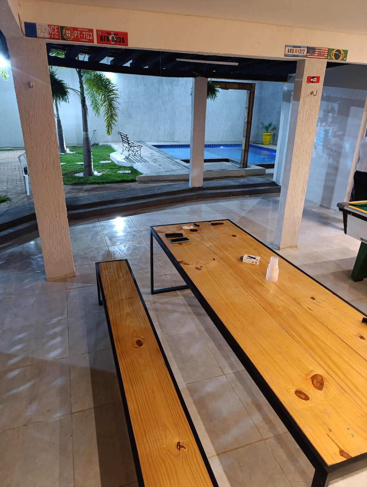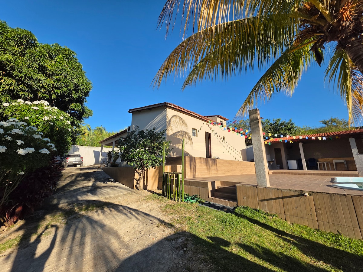OBS: NÃO LOCAMOS PARA FESTAS/EVENTOS; PROIBIDO USO DE SOM. Espaço 20x40m, com sombras, piscina, deck com churrasqueira, cozinha. Armários, cooktop 5 bocas com botijão de gás instalado, dois garrafões de água mineral, bebedouro, 2 quartos com ar-condicionado, sendo um suíte, banheiro social (os dois banheiros com banho quente), alpendre com vários locais para colocar redes, geladeira. Quarto 1 (suíte): 1 cama casal, 1 rede; Quarto 2: 1 cama casal, 1 cama solteiro, 1 rede, 2 colchões solteiro.
