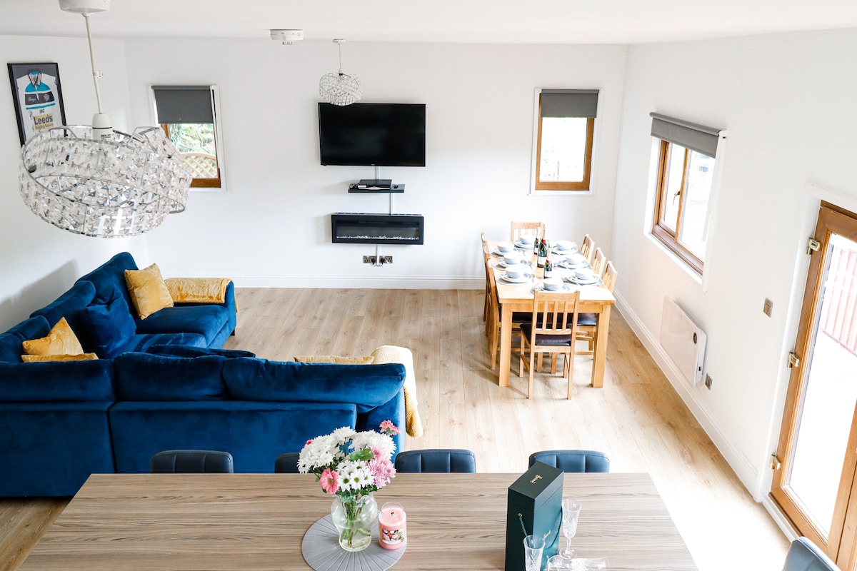 Unique, modern log cabin within private grounds, situated in the heart of West Yorkshire. A place where you can allow yourself to relax and unwind and take in the gorgeous surroundings. Just a stones throw away from some beautiful scenic walks including Ilkley Moor, Baildon Moor, St Ives Country Estate and 5 Rise Locks/Leeds Liverpool Canal. There is a local pub situated a short walk away from the log cabin.