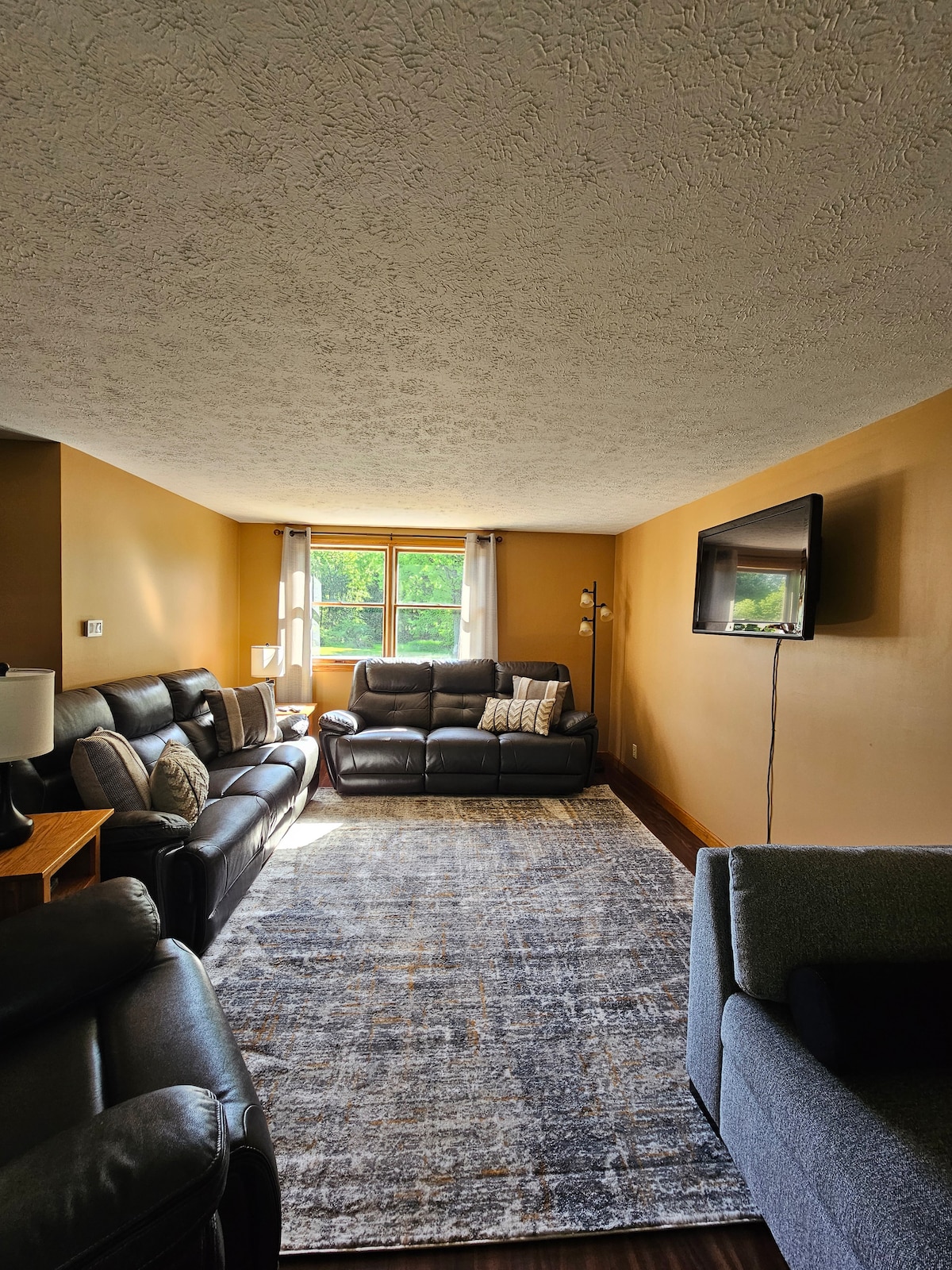 ESCAPE to PEACE & NATURE. Clean, spacious living on a peninsula surrounded by a beautiful, private man-made lake. Stunning views, incredible sounds of nature, Great Room, lofted ceilings, firepits,back deck, outdoor sectional. GREAT WiFi, office space, TOYROOM, Media room & living room. Wash/dryer, Central A/C, Keurig, 2 flatscreen TVs, Roku, Sonos Music, bikes, corn hole, air hockey. Enjoy a break from the rest of the world. Halfway between NYC/Chicago. ALLuNEED!
