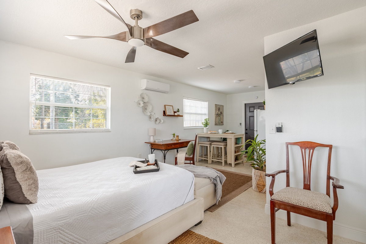 This beautifully appointed guesthouse offers a serene retreat with a double sink, a large walk-in shower, and a luxurious bathroom. Enjoy complete privacy from the main house as you enter your secluded space through a private entrance and patio garden. Whether you're seeking a romantic getaway or a peaceful solo retreat, this guesthouse provides the perfect escape. ⁃ Orlando airport: 16 minutes ⁃ Downtown Orlando: 10 minutes ⁃ Disney parks: 25 minutes ⁃ Universal studio: 27 minutes