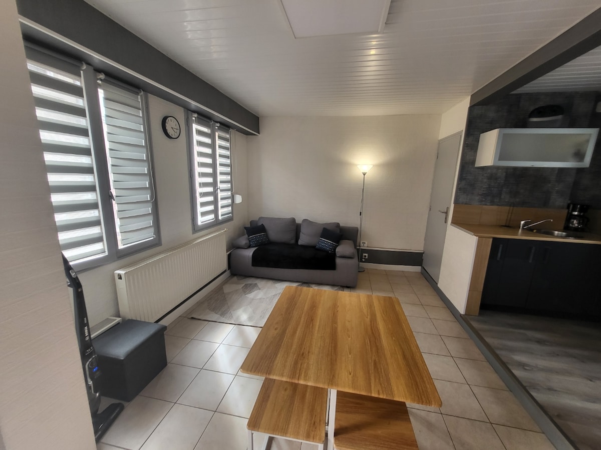 Bienvenue au Studio Le Plumard Bleu. Idéal pour les travailleurs ou les couples, parking rue gratuit, à 3min de l'autoroute, 10min à pied de la gare, bus gratuit à 50m vous emmène à la plage (C3). Quartier calme, parfait pour télétravailler (wifi). Studio lumineux (avec volets) situé dans un bâtiment de la reconstruction entièrement rénové (thermique et fonctionnel) et classé 2 étoiles. Il se distingue par sa conception alliant espaces sur mesures et une décoration élégante et pétillante.