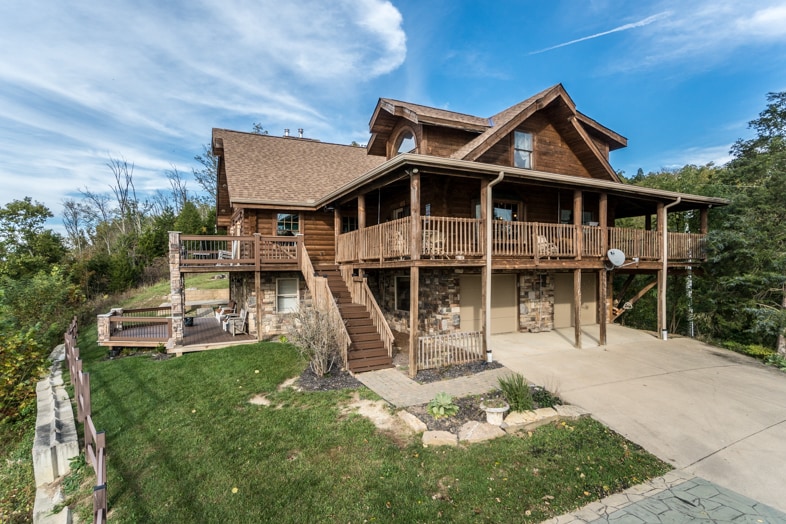 This well-furnished cabin is surrounded by 18 acres of privately owned fields and woods. A wrap-around deck with a hot tub (extra) provides striking views. Hiking trails, fire pit, gas grill, golf cart, pond, laundry, Direct TV (3), internet, stereo, equipped kitchen and games all make for a fun country stay. Rising Star and Belterra Casinos are closeby, and a park/boat ramp on the Ohio is nearby. Rising Sun and Vevay are short drives, and the Arc and Creation Museum are both within 1 hour.