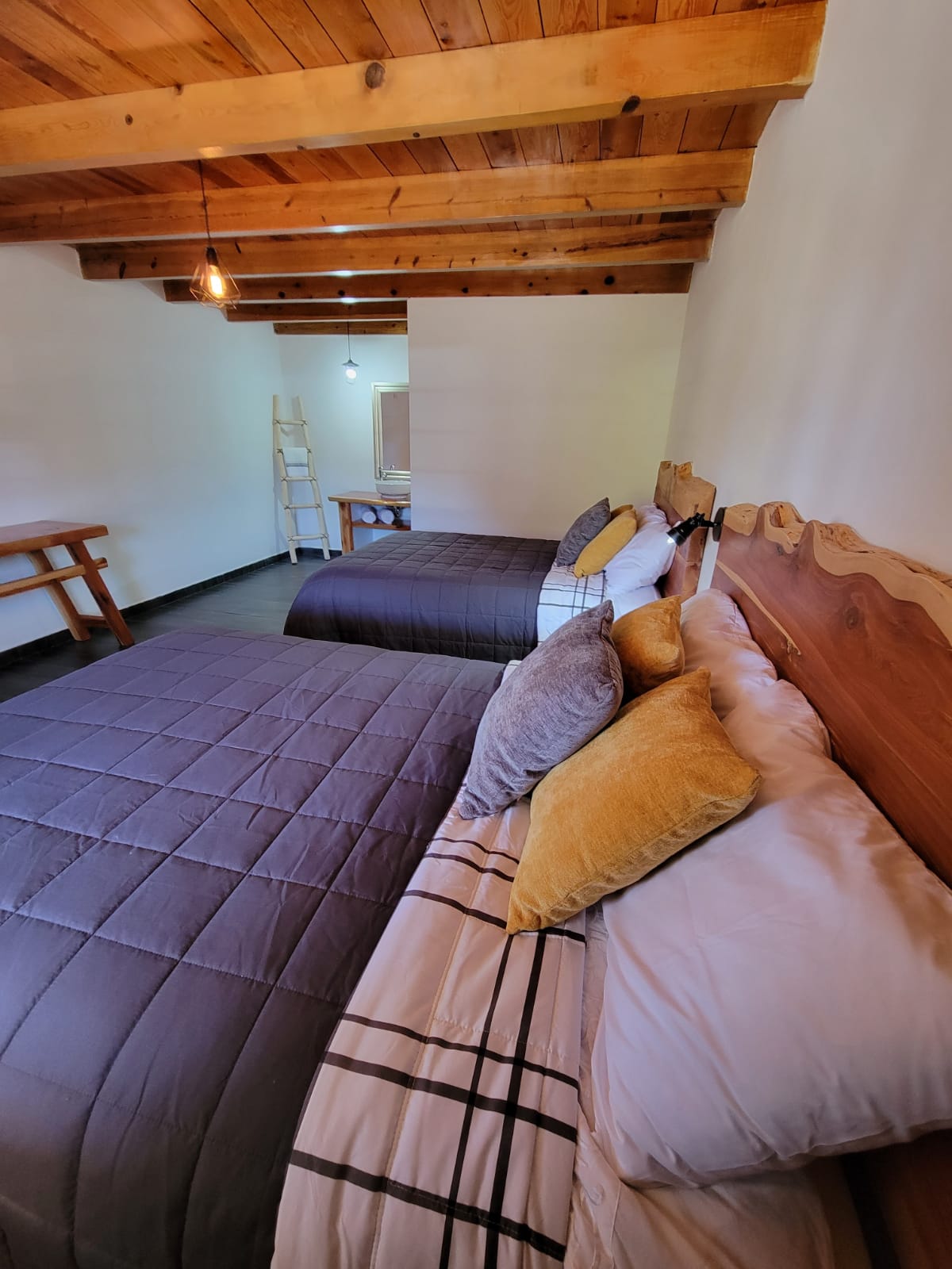 Encantadora habitación para pasar unas lindas vacaciones en compañía de tus familiares o amigos. Cuenta con lo indispensable para hacer de tu visita una experiencia inolvidable. Cuenta tus historias en el área para fogata y disfruta de la comida que tú quieras cocinar en el asador. La habitación cuenta con calefacción por minisplit, a/c, wifi, tv por cable, agua caliente las 24 hrs, secadora de cabello y amenidades. Contamos también con amplio estacionamiento.