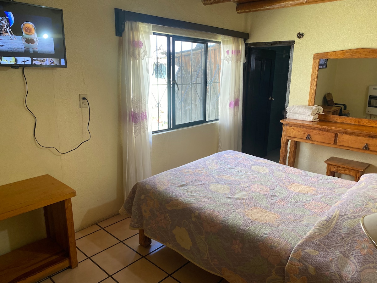 Hospédate en esta hermosa habitacion en una zona privilegiada en Creel. Excelente lugar para pasar unos días en contacto con la naturaleza en compañía de tu pareja o amigos. Contamos con un área para tus conviviós y carne asada. Cerca del centro del pueblo donde encontrarás restaurantes y artesanías.