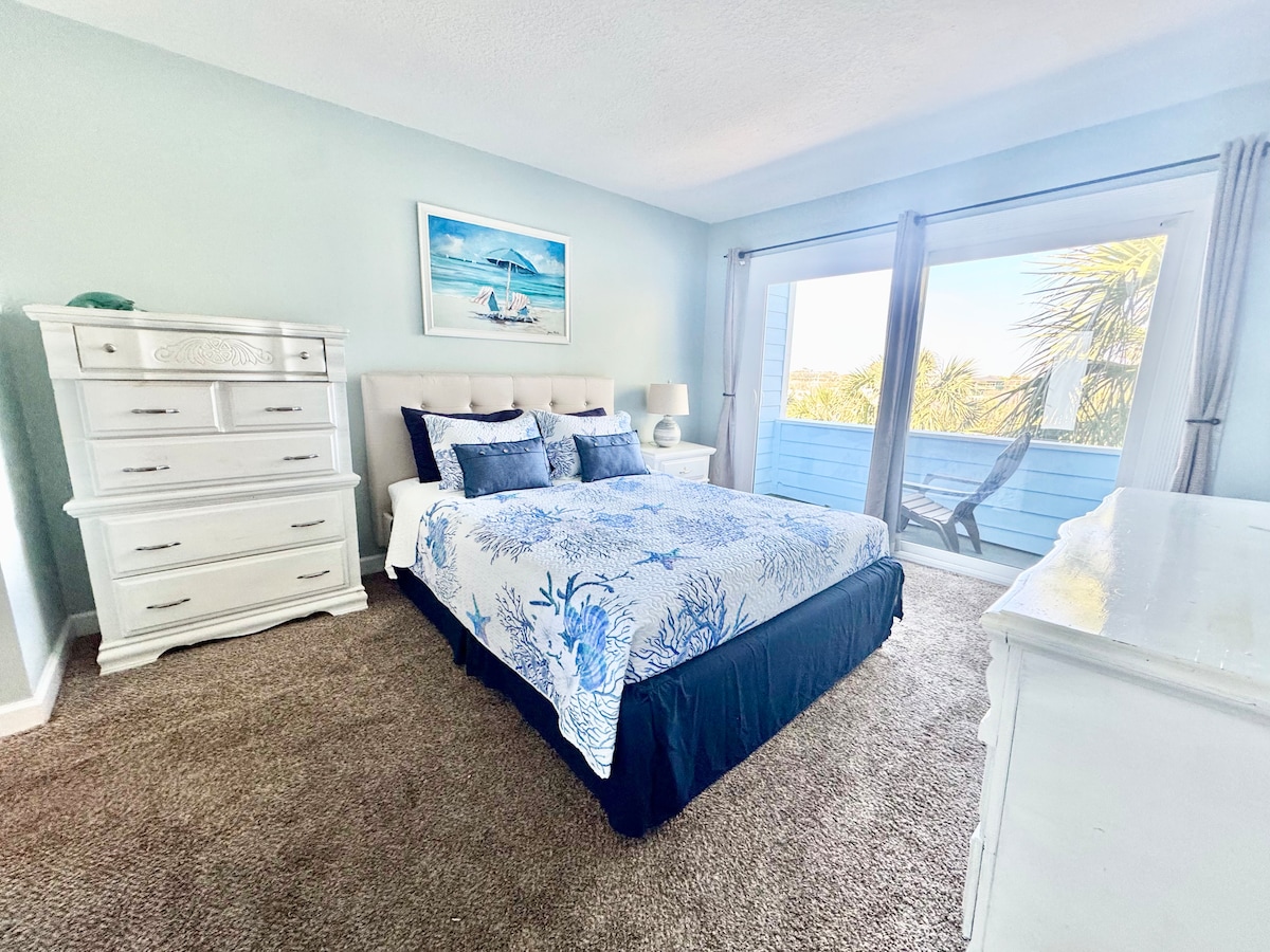 Relax on the beach or unwind at the pools. Close to shopping and restaurants. 15 min drive to historic downtown. Perfect for families, couples, friends, solo travelers. You're an 8 minute walk on property to beach with beach chairs, umbrella, and a beach mat. Fully equipped kitchen, free WiFi, 2 pools (one heated), fitness room, full size washer/dryer in unit, Smart TV, pet friendly 1 Dog Only, $50 cash reg fee plus a flat $15 Pet Fee for those bringing a dog **Strictly NON-SMOKING**