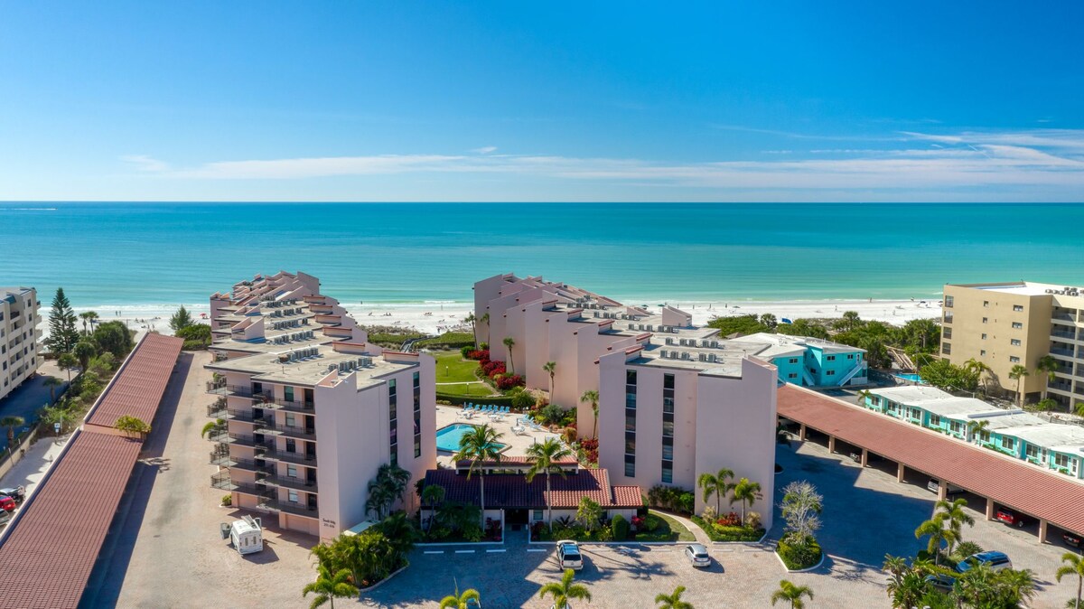 Luxurious apartment style condo on Siesta Key Beach, Sarasota Florida overlooking the quartz white sand and turquoise waters of the #1 beach in the USA. Enjoy exquisite ocean views from the balcony or just a few steps to the beach. Our gated community positions you steps away from whatever your heart desires (pool, ocean, grocery store, restaurants, live music and local shops). Your options are limitless on Siesta Key. If you need more than one condo check - airbnb.com /h/breakers203