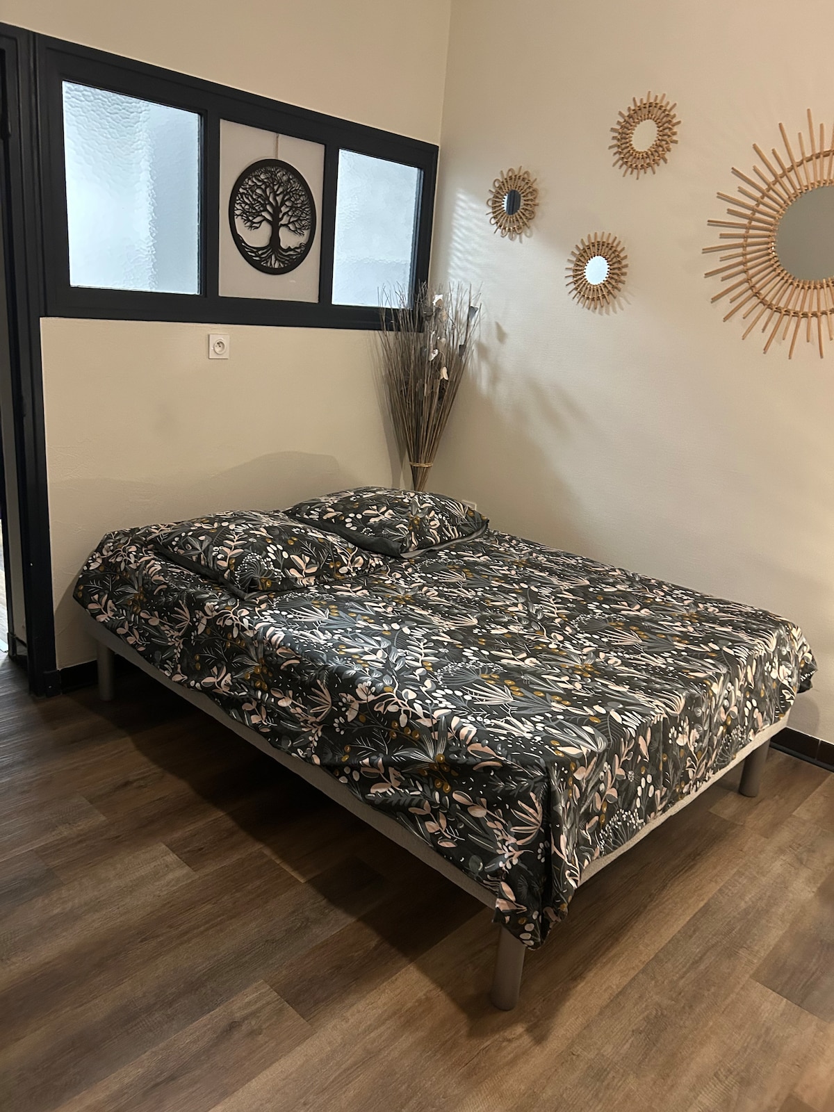 Situé dans la Drôme, le studio est indépendant, au rez-de chaussé d'une maison en pierre, face à un jardin fleuri et arboré. Lumineux l'après-midi, frais en été, il est entièrement équipé avec kitchenette et mange debout. La salle de bain dispose d'une douche à l'italienne, d'une vasque et de toilettes classiques. Deux couchages sont disponibles : un lit dans la chambre à coucher de 120x200cm et un canapé lit de 140x200cm dans la pièce principale.
