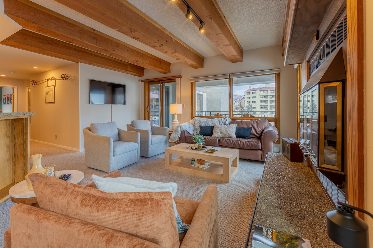 Wake up to the best view in the building — sweeping, unobstructed mountain vistas from our spotless top-floor condo. Being mountain-facing and on the top floor means no noise from above, more privacy, natural light, and postcard-worthy sunrises/sunsets. Just steps from the free shuttle and a 5-min walk to lifts, shops & dining. Sleeps 6 (queen, bunk, pull-out). Balcony, stocked kitchen, Wi-Fi, WFH setup, washer/dryer, family gear, hot tub, elevator, pet-friendly.