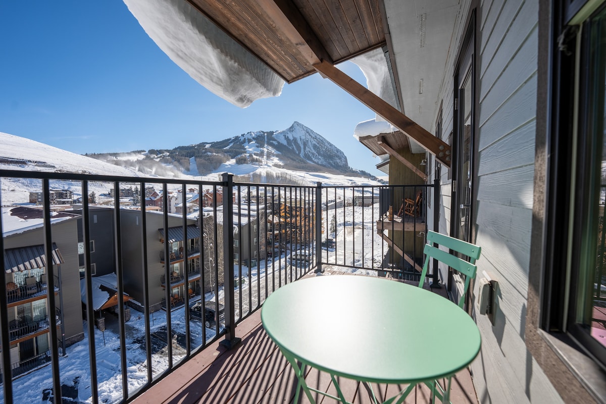 One of the very rare ski-in, ski-out properties in Mt. Crested Butte! This fully renovated, luxurious condo overlooks the Peachtree and Westwall lifts, making it a perfect spot to watch the ski-schoolers or ski directly from the building onto the Westwall lift as you start your day! This stunning condo sleeps up to 8 and includes a ski locker, elevator, hot tub, and garage parking! The wrap around deck offers stunning views of the ski resort (and NYE/4th of July fireworks!). Don't miss out!