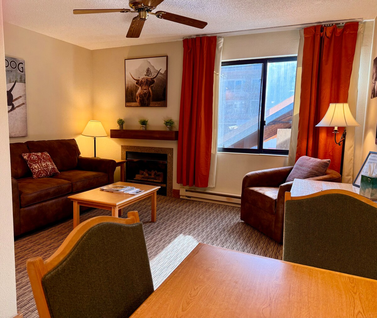 Welcome to the Grand Lodge Getaway! Enjoy the quiet and comfort of this top-floor suite offering enhanced views and privacy unmatched by other units you’ll find in the building. Featuring a separate bedroom (with partition) and a gas fireplace to cozy up to on the newly furnished sleeper-sofa, this is the perfect spot for you and your friends or loved ones to relax and unwind after an adventurous day in Crested Butte! Book now to guarantee your dates; I would love to host your stay!