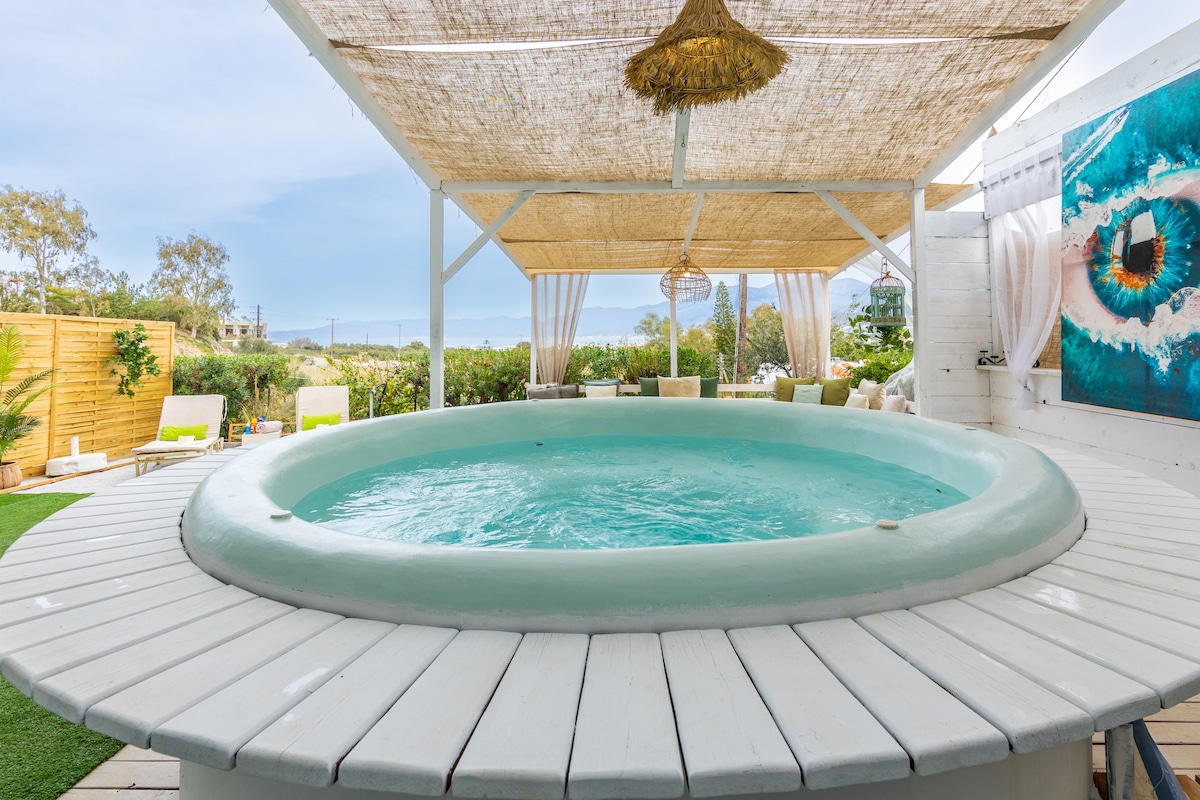 The house is a recently renovated house with eco friendly materials and has all modern comforts. It has 1 double bed , a kitchen and a bathroom. The house has its own private yard. Located in a family agrotouristic organic farm with olive trees, herbs and vegetables. You can participate at the farms actrivities.We provaide cookig class,spinework theapy. There is a shared terrace and an mini pool. It is also close to beautiful beaches, antiquities such as Knossos and the airport [28'],