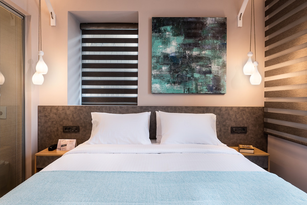 Perfect choice for a single traveler who seeks a place of high aesthetic and utility. Placed in the second level, this room provides the exact same luxuries, amenities and services with our larger rooms. Ideal for the needs of a shorter stay.