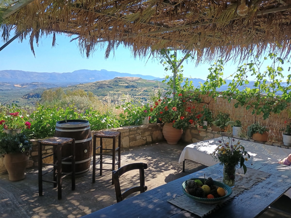 Charoupia cottage is part of 300 years old small hamlet, it is a Petite traditional cottage suited on the hillside among olive groves and carob trees overlooking the Mediterranean sea. In the valley of the White River and the gorge of Pefki Ideal for nature lovers, only 900m from the beaches, tavernas and shops of harbour town Makrigialos at the foot of the Pefki Gorge this area offers fantastic opportunities for those who love walking & nature With high speed internet & top quality mattresses
