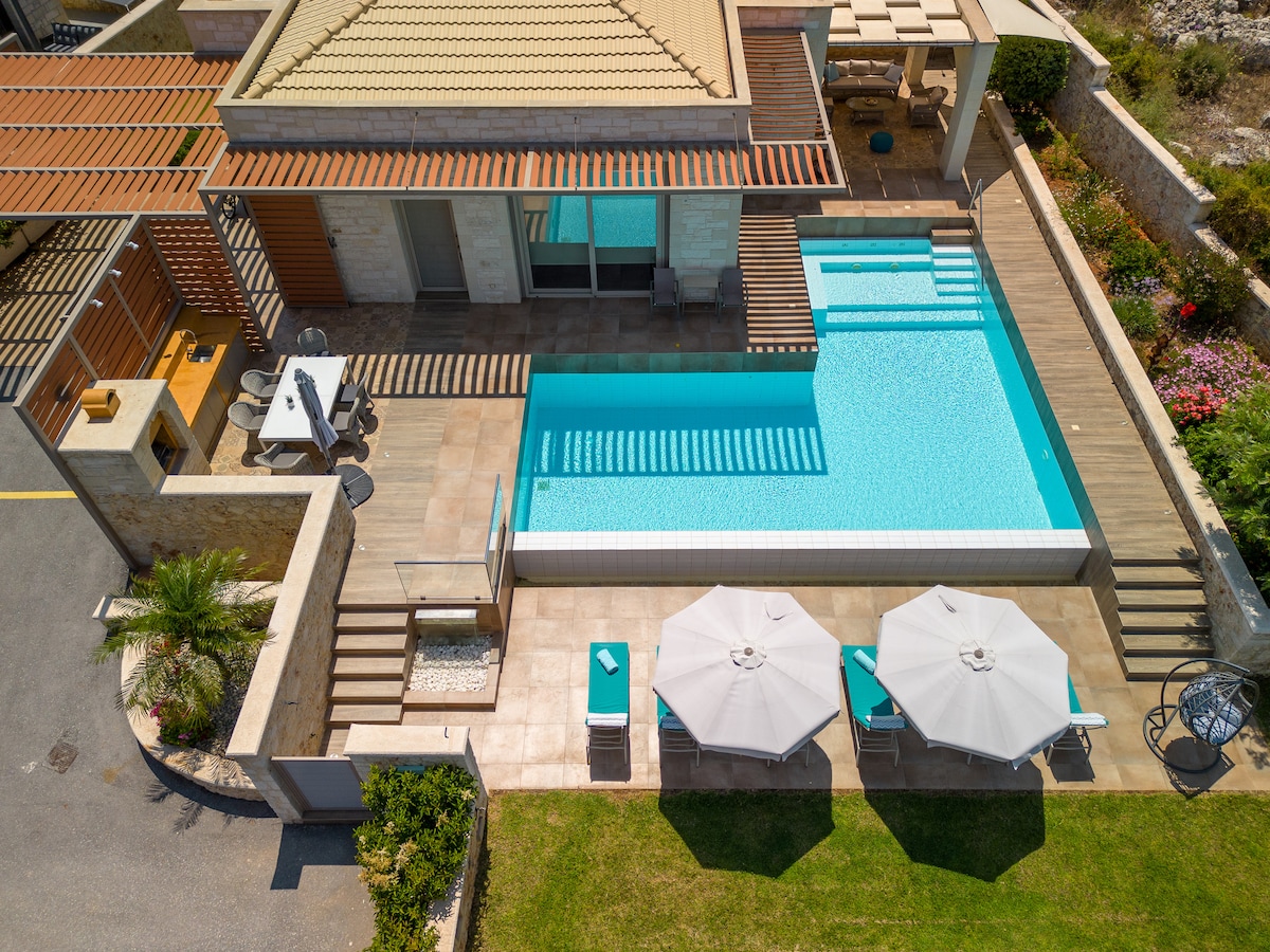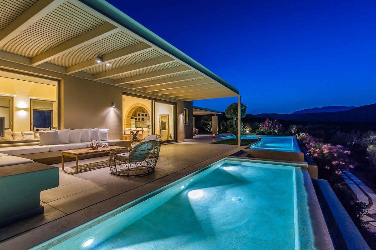 Find eco-friendly elegance on Crete at Galilean Moons Villa. Each of the four houses that make up this expansive complex was designed with sustainable systems and natural materials, for an ambience of luxury that blends into the landscape. And it’s a spectacular landscape, with panoramic views of the sea and coastline around Heraklion.