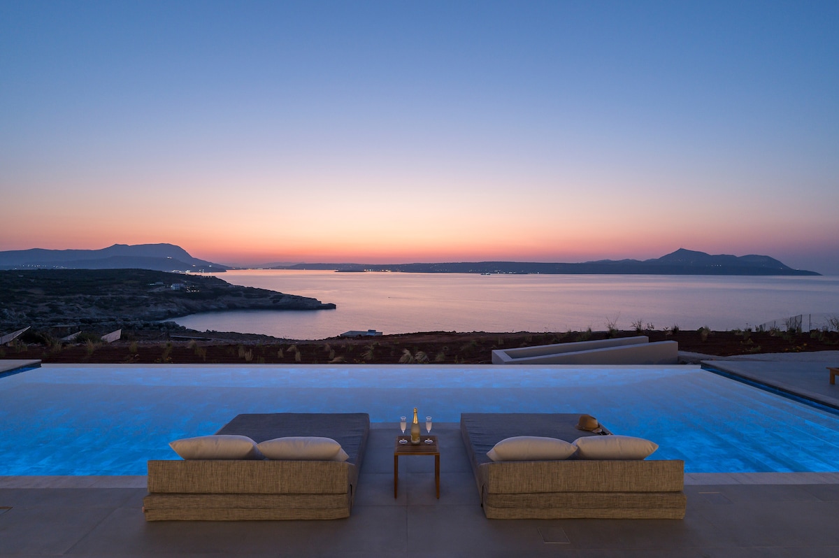 The seaside Villa Hydrobates stands proudly on the rocks and is characterized by high aesthetics with stunning panoramic views of the Cretan Sea. It features outdoor jacuzzi with the possibility of heating and is fully equipped, providing guests with a comfortable and relaxing stay. Heated jacuzzi is charged an additional 40 euros/night and requires 2 days notice in advance.