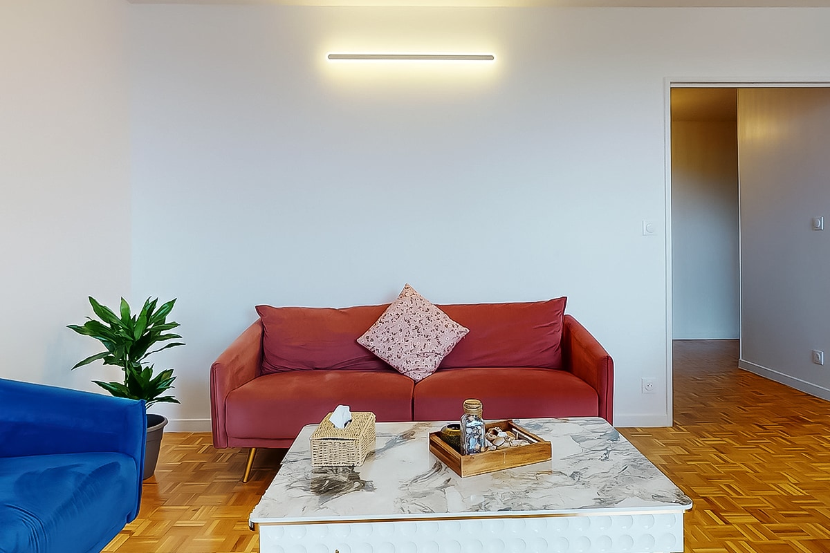 Optez pour un appartement cosy, moderne et idéalement situé. Dans un quartier calme et agréable, proche de toutes commodités essentielles et à quelques pas du métro ligne 8 "Pointe du Lac" vous permettant un accès facile et rapide à la capitale. Salon lumineux donnant accès au balcon avec un canapé convertible et coin café ☕️ Smart TV, internet haut débit et Netflix. Cuisine toute équipée, chambre lit double, avec rangements. Idéal pour les couples, amis, familles et voyages d’affaires!