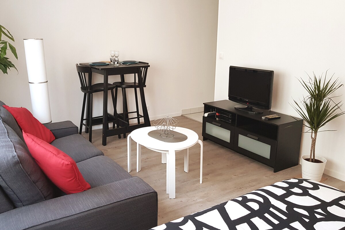 Optez pour un appartement cosy, moderne et idéalement situé. Dans un quartier calme et agréable, proche de toutes commodités essentielles et à quelques pas du métro ligne 8 "Pointe du Lac" vous permettant un accès facile et rapide à la capitale. Salon lumineux donnant accès au balcon avec un canapé convertible et coin café ☕️ Smart TV, internet haut débit et Netflix. Cuisine toute équipée, chambre lit double, avec rangements. Idéal pour les couples, amis, familles et voyages d’affaires!