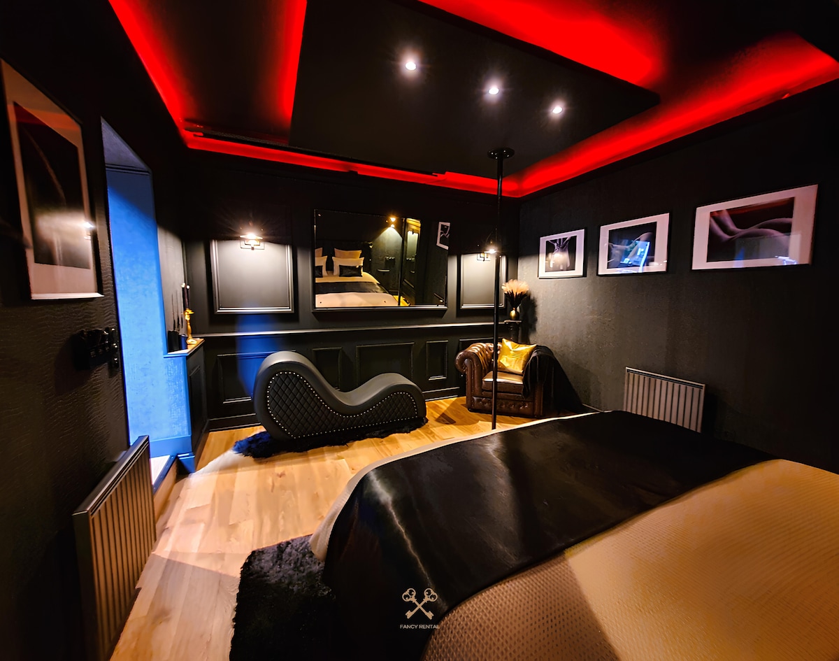 ❤️🔥 Discover the luxury Love Room VELVET & LEATHER at 20min from Paris, perfect for a romantic and sexy getaway ! 💎 Spa bath, private sauna, cloudy-effect king-size bed, stripping bar, tantra sofa, etc. 💋 Explore new sensations and create unforgettable memories together in the incredibly equipped secret BDSM playroom space 🎬 92" Cinema face to the bed with Netflix, Prime Vidéo, Disney+, Spotify 💫 Escape to a haven of peace and luxury for a unique and memorable experience !