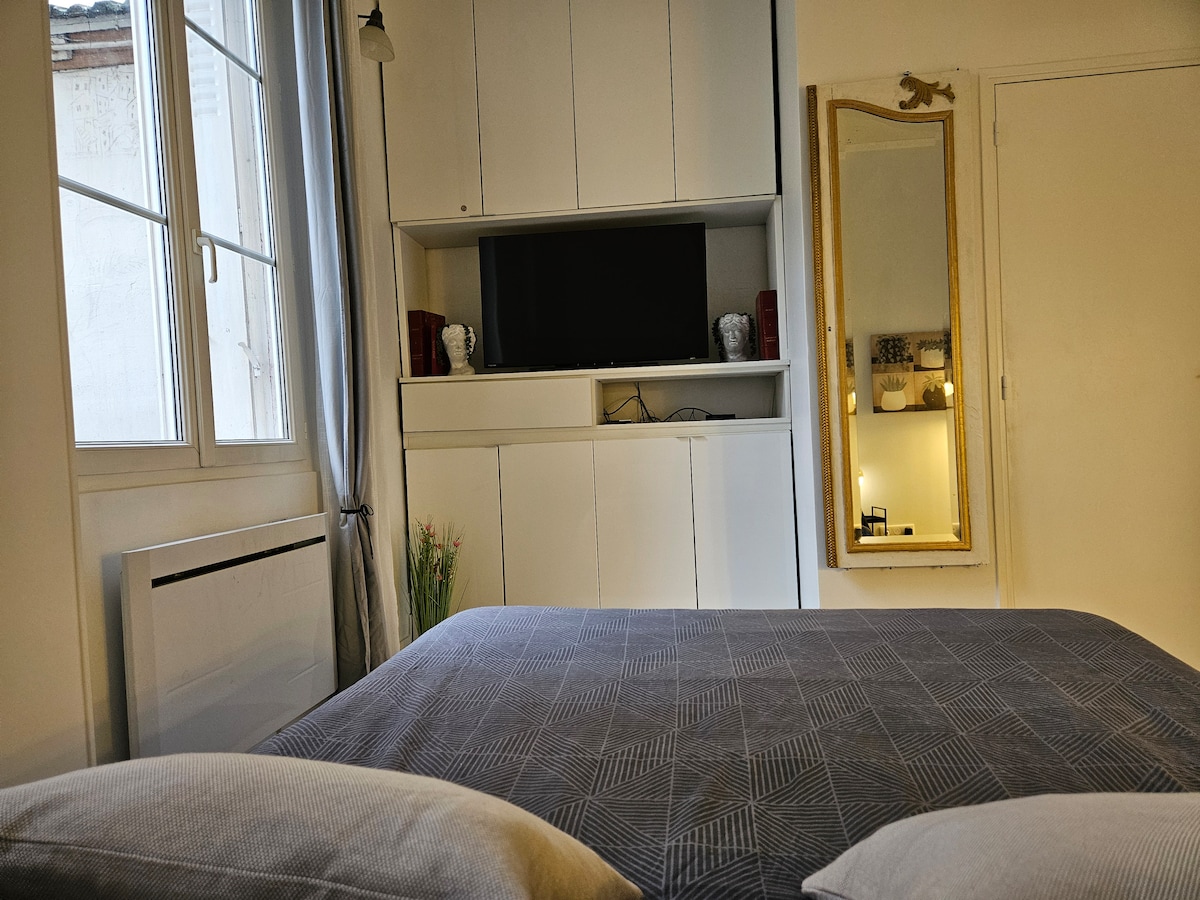 This splendid, bright and well equipped apartment ideal for 2 people is located in the very heart of Paris. You can combine the calm comfort and charm of an authentic eighteenth century "Parisian home" with antique Versailles parquet, ceiling with beams and a beautiful marble bathroom. The apartment has a fully equipped kitchen (fridge, microwave, stove and kitchenware including a kettle and Nespresso machine), a Murphy comfortable 150 bed suitable for 2, Wifi, TV and music system.