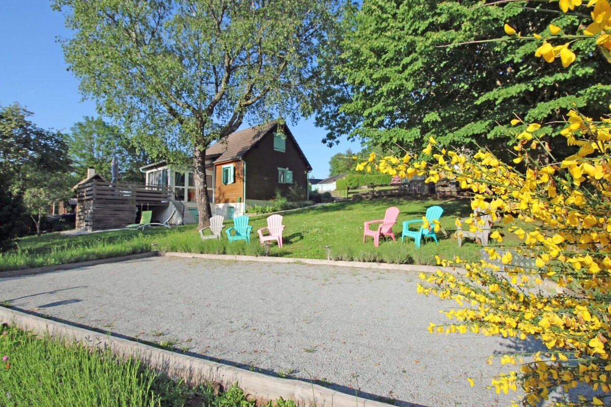Chalet, très bon standing, situé au Lac de Vassivière, au village de Vauveix, avec accessibilité au lac à pied en 3 min/200m, plage surveillée, parking, terrasse, restaurant. Dans le Parc Naturelde Millevaches, il y a également de nombreuses possibilités de randonnées, sport de pleine nature etc... Notre logement est proche de l'art et la culture (musée d'art contemporain, nombreuses manifestations culturelles).. ATTENTION : pas de WI-FI, mais wifi public disponible à la plage et les cafés.
