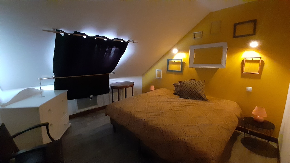 Grande chambre d'hôte située au premier étage du manoir. Restaurée dans le respect du travail des anciens avec du mobilier d'époque. Le confort moderne est toutefois au rendez-vous avec un grand écran, le wi-fi et les équipements nécessaires pour se faire une boisson chaude (cafetière expresso, bouilloire). Salle de bains et toilettes privatives.