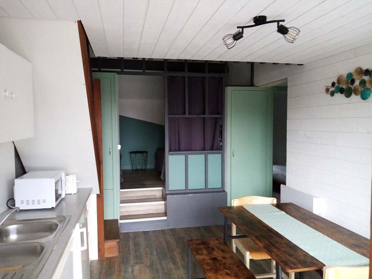 Nous vous proposons cette maisonnette mitoyenne, avec stationnement à l’intérieur d’un jardin clôturé et privatif. Vous trouverez une cuisine équipée, ainsi qu’une chambre confortable avec sa TV chromecast Inclus Netflix. ✨ Vous croiserez probablement notre adorable chienne Nyssa, et notre chatte noire Pita. Draps, serviettes, nécessaire de cuisine, boisson chaude et petites sucreries fournis. ☕️ Arrivée et départ autonome. À bientôt dans notre paisible havre de paix! 🍃