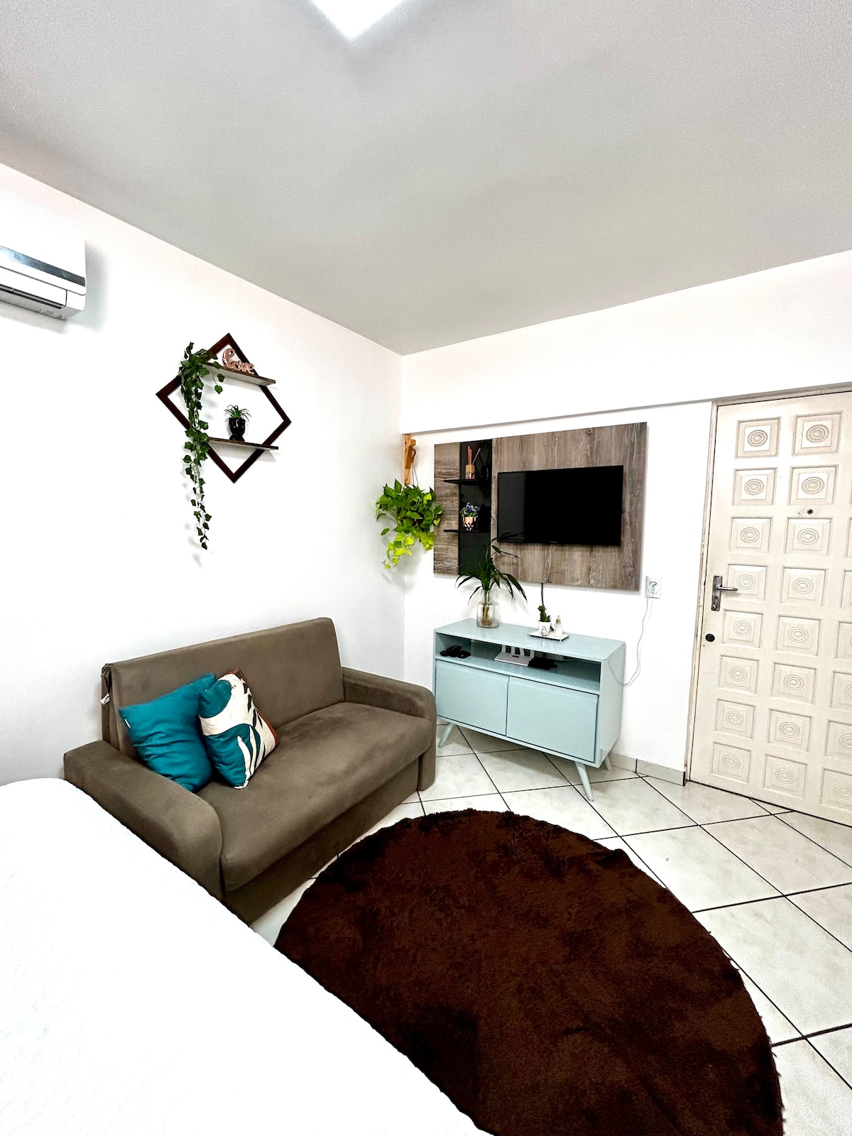 Segurança, conforto e EXCELENTE localização. O espaço acomoda até 3 pessoas e a localização é perfeita. Próximo à Av Centenário, fica perto de mercados (BISTEK, ANGELONI e GIASSI) e restaurantes. O local conta com uma suíte com ar-condicionado e um armário para estadias curtas. A sala conta com um sofá-cama e um SMART TV, com Wi-Fi incluso. A cozinha é completa (microondas, fogão de indução, panelas, talheres) Ideal para casais, pequenas famílias ou viagens a trabalho.