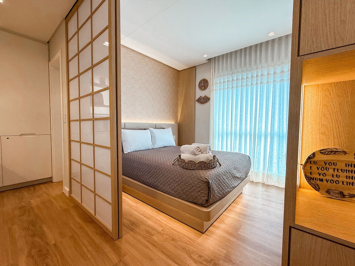 Relaxe neste lugar único e tranquilo. Sem taxa de limpeza. Um dos apartamentos mais equipados de Criciúma, conta com lava e seca, todos os aparelhos eletrodomésticos para vc fazer refeições sem se preocupar, tv 65” na sala, tv no quarto, ar condicionado, dois banheiros com duchas quentinhas, cama super confortável, muito bem localizado ao lado da Abba Pai, próximo ao trevo que liga as cidades de Içara, Morro da Fumaça e Cocal do Sul, pertinho da Via rápida. Vaga de garagem coberta.