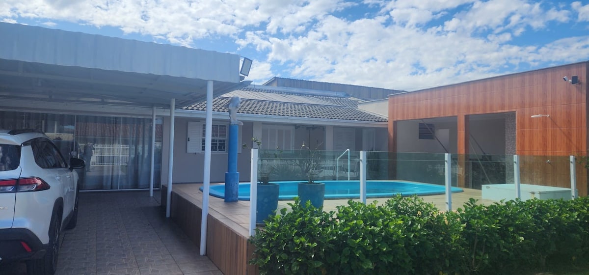 Você é sua família perto de tudo!!! A casa é simples, mas tem tudo que vc precisa para curtir o verão em alto estilo! Acomoda 8 pessoas tranquilamente! Possui amplo espaço externo e coberto onde temos churrasqueira pia mesa e cadeiras, ainda na parte externa tem uma linda piscina de 7x3.50 na parte frontal da casa e um pátio, todo fechado para maior segurança, na casa temos 3 quartos sendo 1 suíte, sala, cozinha e banheiro. Lavanderia e banheiro externo e ainda uma ducha no pátio dos fundos!