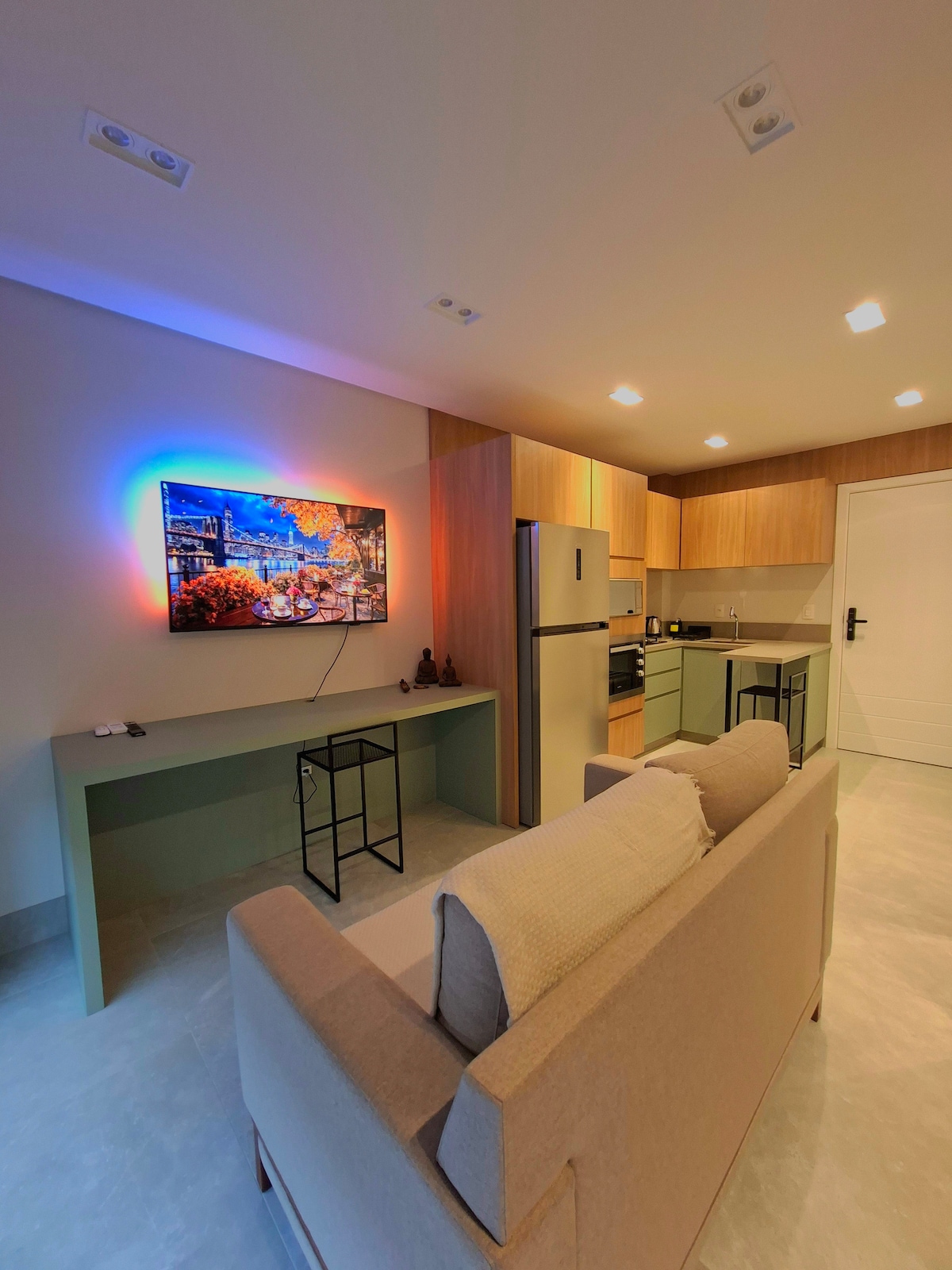 Apresento a você um Studio moderno, prático e totalmente mobiliado, localizado no HUB Smart Home, estrategicamente no centro de Criciúma. SOBRE O STUDIO O studio é todo mobiliado, equipado e fica a poucos metros de supermercados, farmácias, lojas, hospitais e restaurantes. Trazendo toda a praticidade e conforto que você procura. SOBRE O HUB O edifício é todo automatizado - feito para Airbnb. Nele você tem acesso a academia, área de coworking 24hrs, lavanderia, mercado autônomo e bicicletário.