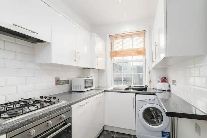 *1 king bed apartment in Queens Park (425sqft) hosting 2 guests *1st floor level (walk up 1 short flight of stairs, no lift) *safe and family-friendly area with easy access to central London in 15 mins *plenty of great local bars, restaurants, cafes and supermarkets within 5 mins walk *60 seconds walk from Queens Park tube station on the Bakerloo and overground lines (no lift at the station) *40 mins travel time from Heathrow airport Read on for a full and detailed description of the property!