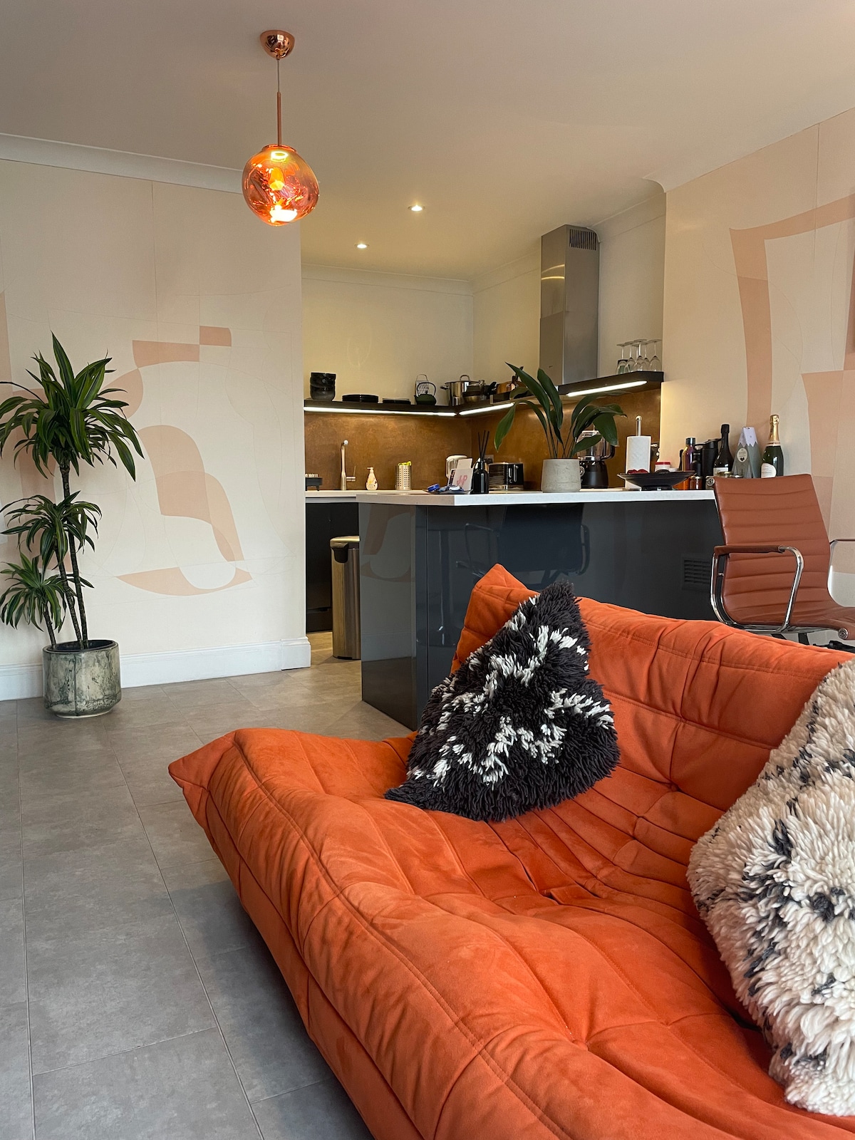 📍High-spec newly built flat 1 min from tube. Premium features: Dramatic 4m ceiling living room, Starlink high-speed internet, wood floors, designer kitchen, Bosch appliances, spa bathrooms, underfloor heating, hot & cold air conditioning, smart TV, large wardrobe, double-glazed windows. etc. Sleeps 6, king beds, private entrance. Hampstead Village restaurants nearby. Perfect London base for families, professionals, tourists. Easy Central London access