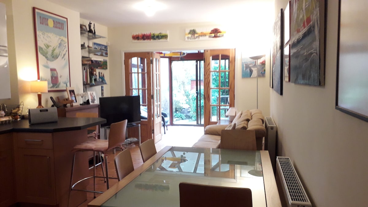 A beautiful self-contained garden studio, located in the heart of historic Highgate Village. The 320 sq foot studio is equipped with King size bed, kitchenette, Bathroom with spacious shower, 55” HDTV, BBC iPlayer, Amazon & Netflix. There is a semi-private outside patio with seating. The village has ten pubs/restaurants within a few minutes walking distance, along with the beautiful expansive Hampstead Heath and Highgate Cemetery. With excellent bus and tube transport connections close by.