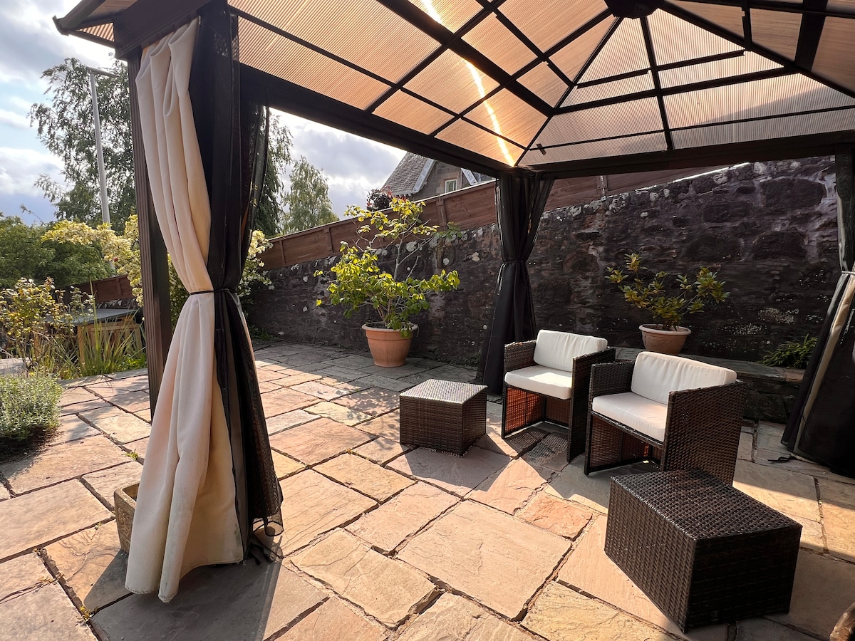 Centrally located 1 Church cottage provides comfortable, quirky accommodation for up to 4 people in 2 bedrooms, 1 double bed and 2 singles. Well situated in the centre of the historic market town of Crieff. Lovely spacious and bright open plan living/kitchen area with dishwasher (local laundrette available nearby). Bathroom with bath and electric shower, Superfast broadband, TV with roku and quality Bluetooth speaker. Dedicated decked area within a shared outside space. Parking available.