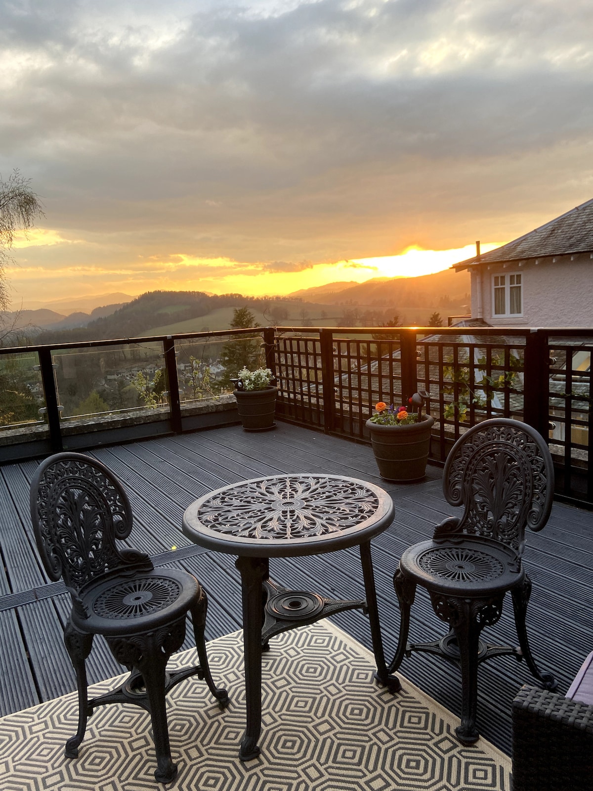 Susan and Graham host Ardarroch and live next door. Nestled in the spectacular surroundings on the outskirts of Crieff, with panoramic views and within easy walking distance of the town centre. Crieff offers many places to eat with an excellent deli and cafes providing good quality local produce. Local attractions include the oldest whiskey distillery, numerous walks and nearby Munros, and a wildlife centre at nearby Comrie. The town has a selection of lovely parks suitable for all ages.